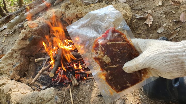 今回用意したのは、母親からもらった味付きの冷凍牛肉。少し溶け始めていましたが、問題なく薄切り肉を焼くことができました。