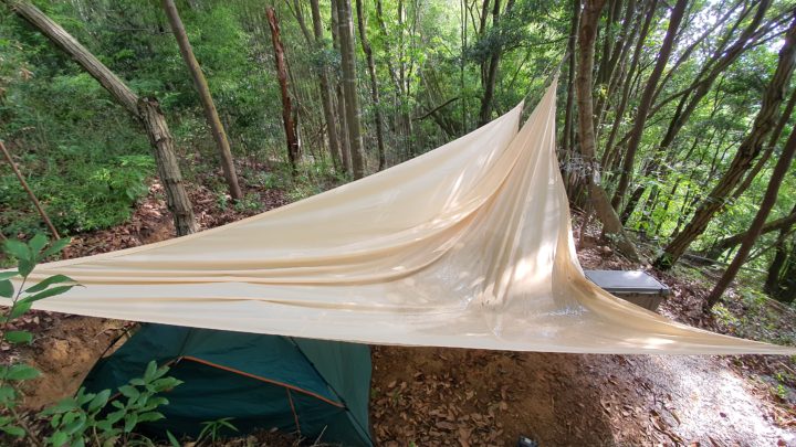 ここ数日、いや一か月ほど疲労を感じながらも、休日には山の作業に取り組んでいます。先日Amazonで購入した大きなタープが届き、山の中腹に設置するための準備を進めていました。しかし、予想外の出来事が重なり、作業を中断することになりました。