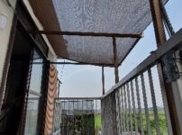 ハンマードリルで簡単!ベランピング用日よけシェードと南側窓の簾設置
